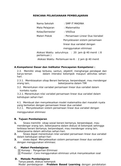 Rpp Sistem Persamaan Linear Dua Variabel Kurikulum 2013 : Rpp Matematika Kls Viii K 13 Materi Persamaan Linear Dua Variabel Revisi 2018 Hasil Bimtek File Guru Now : Sistem persamaan linear dua variabel: